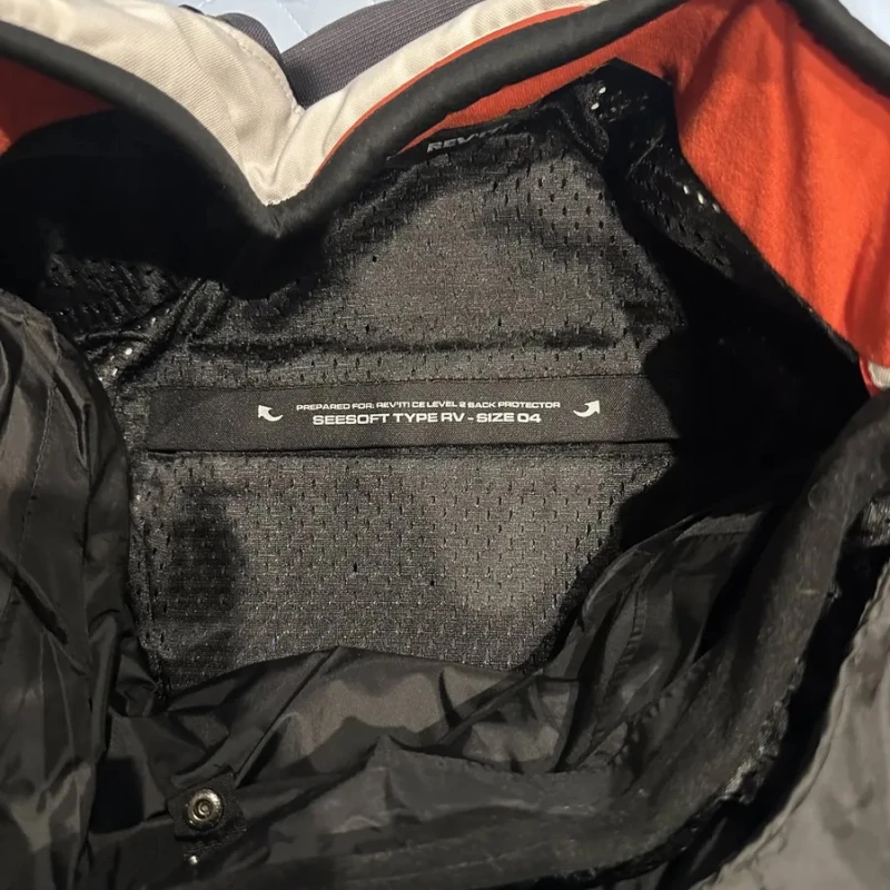 El bolsillo para espalderas de esta prenda de REV'IT! está hecho a medida para insertar la espaldera SEESOFT Tipo RV con homologación CE de nivel 2, que puede adquirirse por separado para maximizar la seguridad.